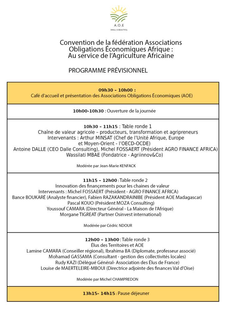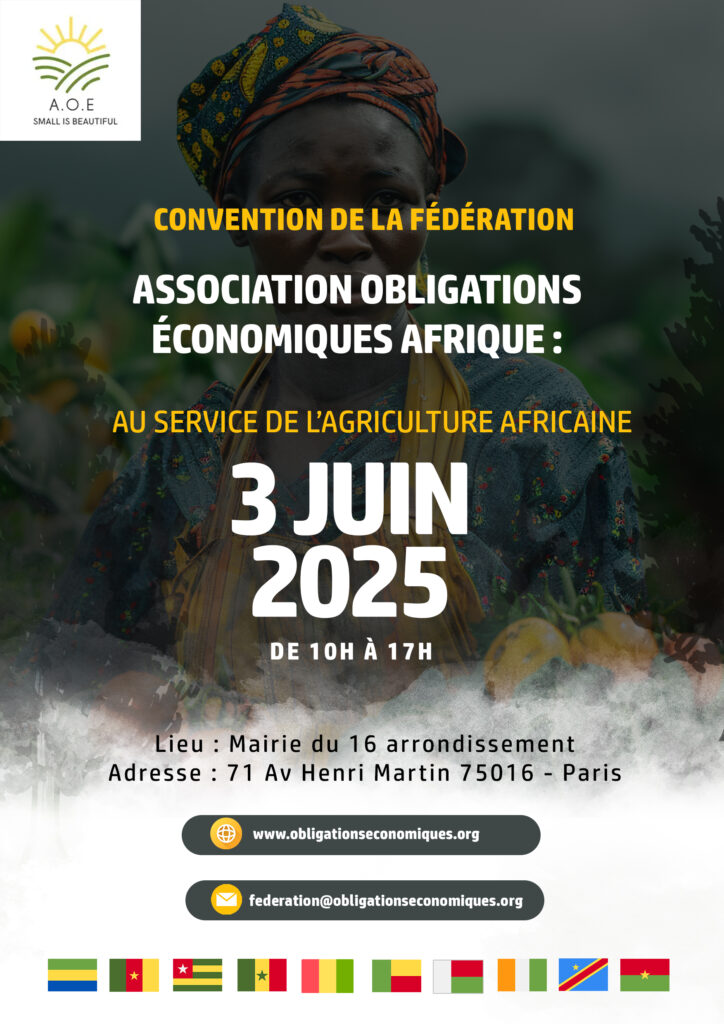 Agro Finance Africa, partenaire de la Fédération des Associations Obligations Économiques Afrique (AOEA), a le plaisir de soutenir la convention du 3 juin 2025, qui se tiendra à la Mairie du 16e arrondissement de Paris.